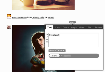 Il suffit de cliquer sur le bouton "+", de choisir parmi 8 types de contenu, et d'ajouter sa petite pierre à l'Internet en cliquant sur "Save". Quelques secondes suffisent pour partager une vidéo, un lien ou vos idées du moment.